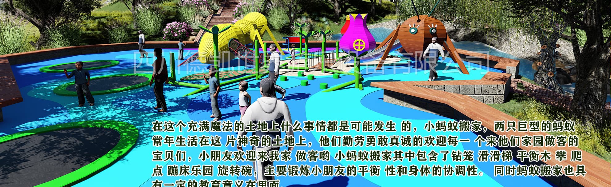 我們是一家主要為文旅地產(chǎn),旅游景區(qū),特色小鎮(zhèn),田園綜合體,生態(tài)農(nóng)莊,,市政公園,研學(xué)旅行基地,商業(yè)住宅,水上世界,兒童探索館等提供IP設(shè)計(jì)、創(chuàng)意規(guī)劃、場(chǎng)地設(shè)計(jì)、產(chǎn)品定制、研發(fā)生產(chǎn),銷售安裝、運(yùn)營(yíng)策劃、售后服務(wù)為一體的無(wú)動(dòng)力兒童游樂(lè)設(shè)施生產(chǎn)廠家。