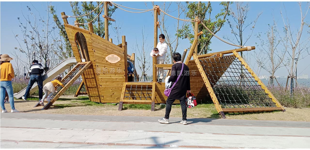 有艘可以攀爬玩耍的“擱淺”海盜船