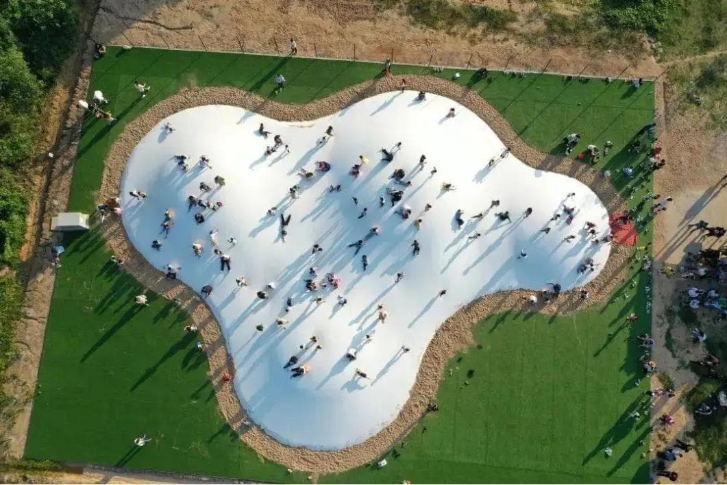 蹦蹦云像棉花糖一般潔白,一樣柔軟。如果漫步在云中,是否會(huì)像踩在一大朵棉花上呢?蹦蹦云其外形酷似白云,顏色多樣,如潔白的,彩虹色的,卡通圖案大熊貓的等等。當(dāng)人們踩在柔軟又富有彈性的蹦蹦云上時(shí),就可以圓夢(mèng)在云朵間散步了。