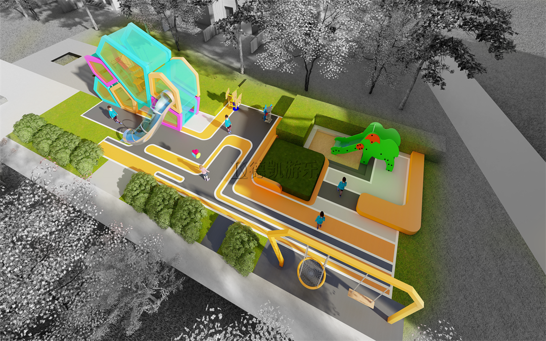 在進行裝備選擇的過程中,我們要對孩子們的心理需求展開分析,從他們的行為和想法上來進行分析,還可以向兒童們提出一些問題,這些問題可以在兒童較多的地區(qū)去進行走訪、了解和調查。游戲設備的種類、配置、路線等都會對兒童的游戲產生一定的影響,比如設備間的道路寬度,設備建筑的顏色,設備的總體規(guī)格尺寸等等。這些都是我們在進行游樂場布局時應該考慮到的問題。在認識到這一點之后,我們就要對游樂場進行合理地布局了。